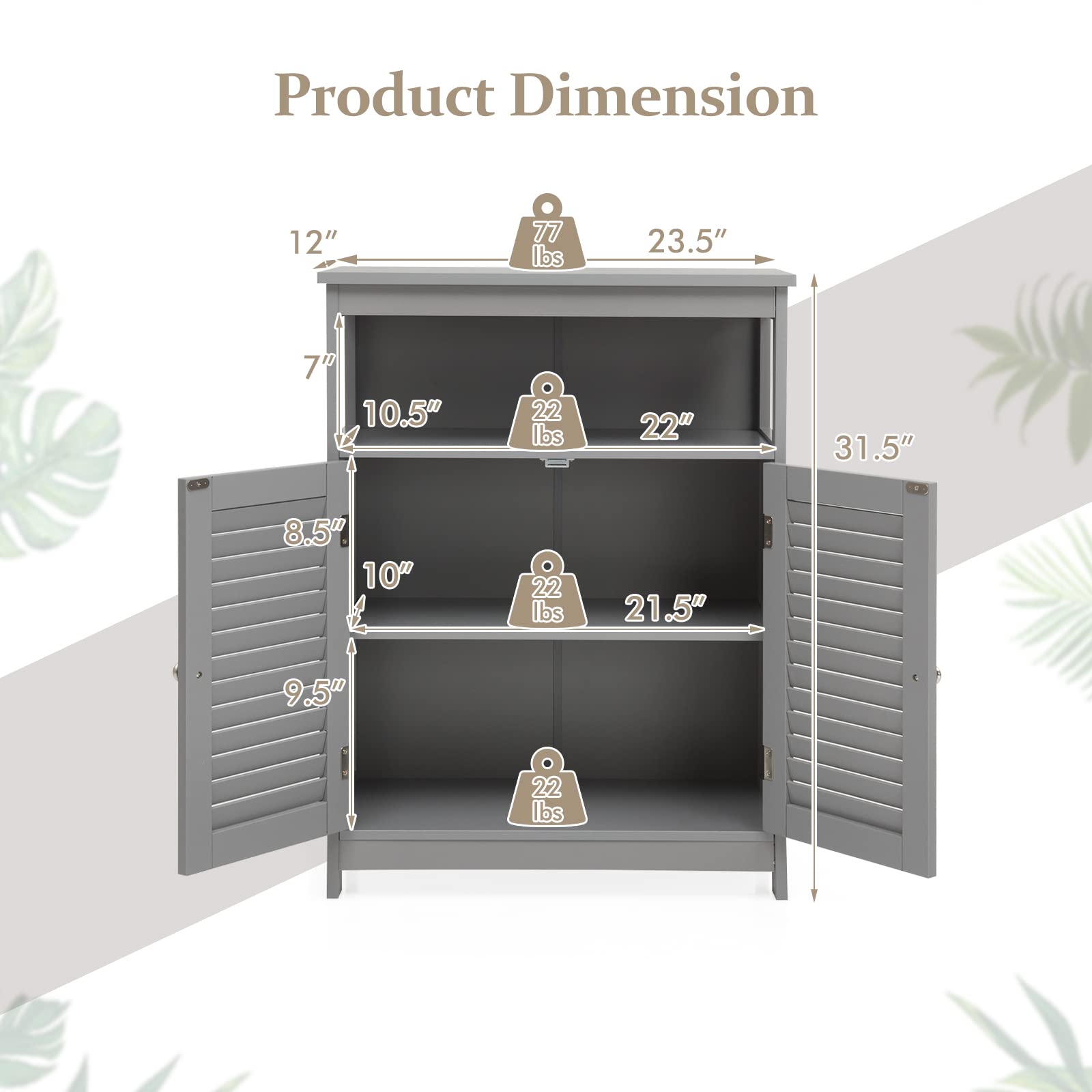 COSTWAY Bathroom Storage Cabinet, Wooden Side Storage Organizer with Louver Doors & Removable Shelf, Freestanding Floor Cabinet for Living Room, Kitchen, Entryway (Grey)