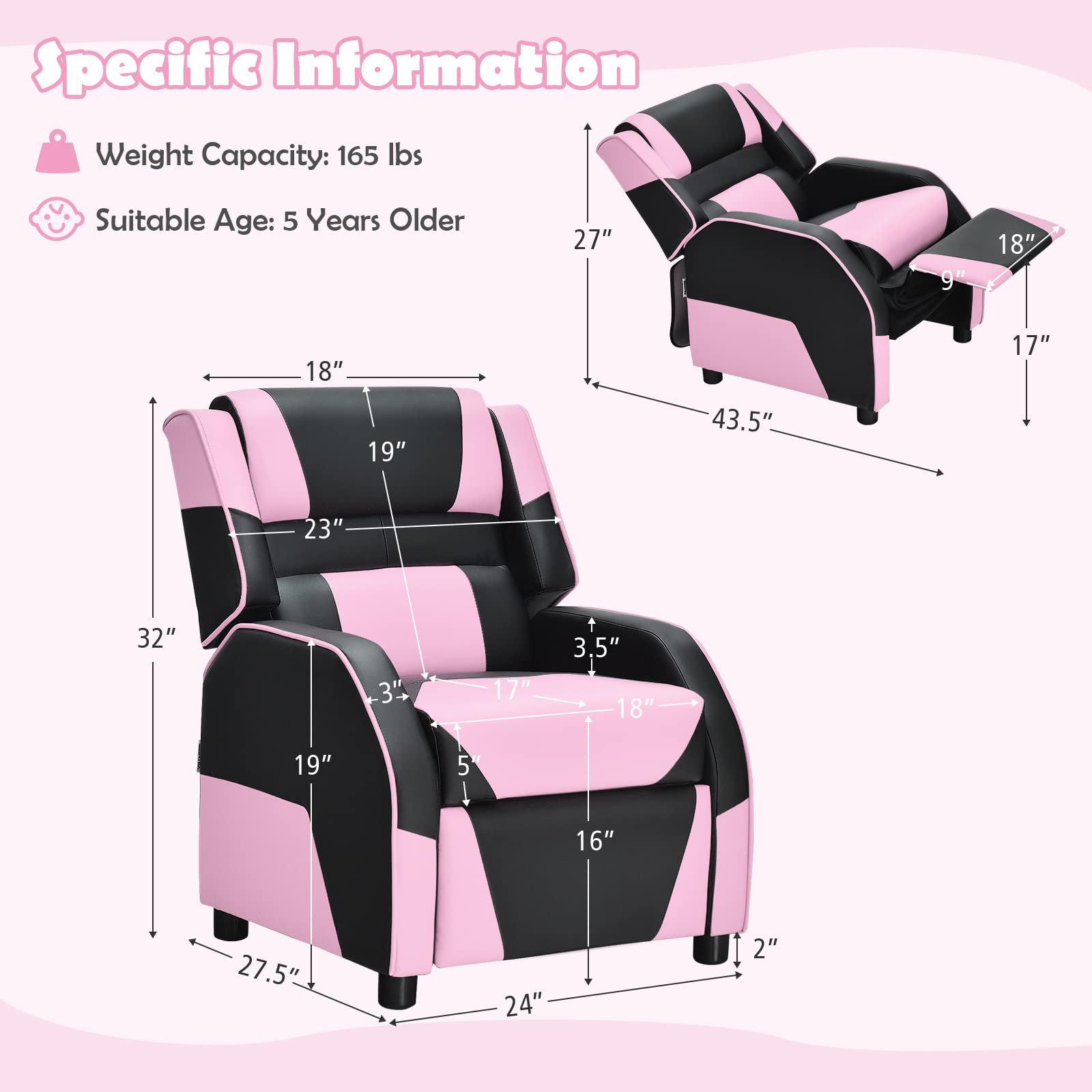 COSTWAY Kids Recliner Sofa, Toddler Leather Recliner with Adjustable Footrest & Headrest, Gaming Reclining Chair for Boys Girls Aged 3 Years Up, Kid-Sized Lounge Chair for Living Room (Pink)