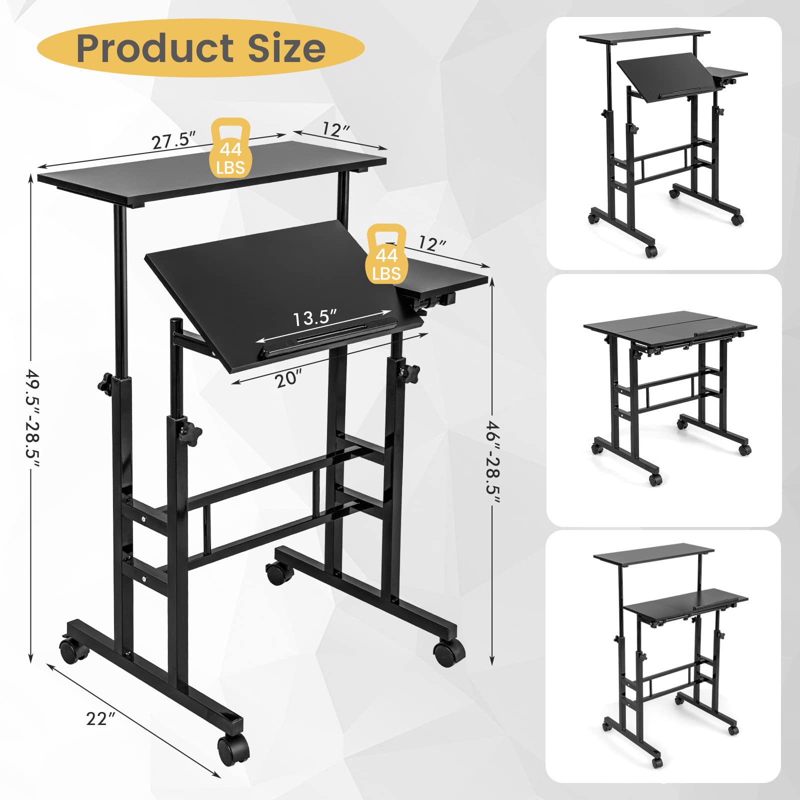 COSTWAY Mobile Standing Desk, Laptop Cart with Flip-Over Desktop, Overbed Table with Wheels, Computer Desk for Standing or Sitting, Height Adjustable Workstation for Home & Office (Black)